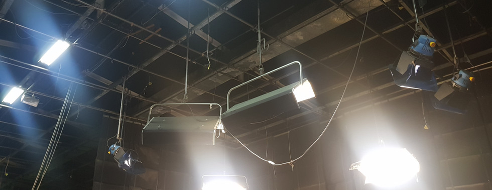 El estudio tiene una sección toda de color verde (piso, pared), lo cuál se llama croma verde que es lo que más se utiliza para la postproducción. Nos comentaron también que en Europa, utilizan un estilo de croma de color azul, que es básicamente lo mismo, la diferencia entre ellos, es dependiendo de los elementos que se vayan a utilizar en dicho escenario. Hay que tener en cuenta que cuando usamos un croma verde, no podemos utilizar ninguna indumentaria de color verde o utilería, porque de lo contrario, se vería transparente, a su vez, si hacemos una toma donde sería de noche, debemos tener en cuenta la iluminación, que debería ser preferentemente luz fría, de lo contrario, si fuera cálida, parecería que estuviéramos de día con la luz del Sol.